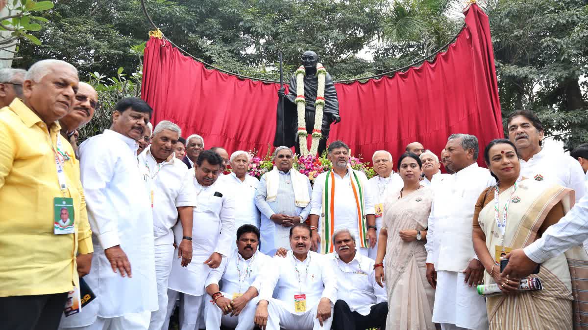 ಬೆಳಗಾವಿ: ಮಹಾತ್ಮ ಗಾಂಧೀಜಿಯವರ ಅಧ್ಯಕ್ಷತೆಯಲ್ಲಿ 1924ರಲ್ಲಿ ಜರುಗಿದ ಕಾಂಗ್ರೆಸ್ ಅಧಿವೇಶನದ ಶತಮಾನೋತ್ಸವದ ಅಂಗವಾಗಿ ನಗರದ ಟಿಳಕವಾಡಿಯಲ್ಲಿನ ವೀರಸೌಧದಲ್ಲಿ ಗುರುವಾರ ಮಹಾತ್ಮಾ ಗಾಂಧೀಜಿಯವರ ನೂತನ ಪ್ರತಿಮೆಯನ್ನು ಮುಖ್ಯಮಂತ್ರಿ ಸಿದ್ಧರಾಮಯ್ಯ ಅನಾವರಣಗೊಳಿಸಿದರು. ಜೊತೆಗೆ, ನಗರದ ಸರ್ದಾರ್ ಹೈಸ್ಕೂಲ್ ಮೈದಾನದಲ್ಲಿ ವಿಶೇಷ ಸರಸ್ ಮೇಳ ಮತ್ತು ಖಾದಿ ಉತ್ಸವ, ವಸ್ತುಪ್ರದರ್ಶನ ಮತ್ತು ಮಾರಾಟ ಮೇಳಕ್ಕೆ ಸಿಎಂ ಸಿದ್ದರಾಮಯ್ಯ ಹಾಗೂ ಉಪಮುಖ್ಯಮಂತ್ರಿ ಡಿ.ಕೆ.ಶಿವಕುಮಾರ್ ಚಾಲನೆ ನೀಡಿದರು.