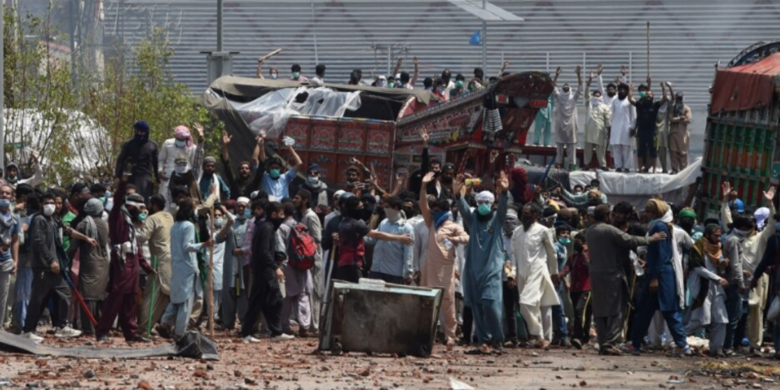 ಸ್ಥಳೀಯ ವರದಿಗಳ ಪ್ರಕಾರ, ಟಿಎಲ್ಪಿ ಪಕ್ಷದ ಮುಖ್ಯಸ್ಥ ಸಾದ್ ಹುಸೇನ್ ರಿಜ್ವಿ ನೇತೃತ್ವದ ಇಸ್ಲಾಮಿಸ್ಟ್ ಗುಂಪಿನ ಮೆರವಣಿಗೆ ಲಾಹೋರ್ ನಿಂದ ಸಾಗುತ್ತಿದ್ದು, ಭದ್ರತಾ ಪಡೆಗಳು ಅವರನ್ನು ತಡೆಯಲು ಮುಂದಾಗಿದ್ದರು. ಈ ಸಂದರ್ಭದಲ್ಲಿ ಘರ್ಷಣೆ ಉಂಟಾಗಿ ಲಾಠಿ ಪ್ರಹಾರ ಮತ್ತು ಅಶ್ರುವಾಯು ಬಳಕೆ ನಡೆಯಿತು. ಪ್ರತಿಭಟನಾಕಾರರು ಬೆಳಗಿನ ಪ್ರಾರ್ಥನೆಗೂ ಮುನ್ನ ಪ್ರಮುಖ ರಸ್ತೆಗಳನ್ನು ಬಂದ್ ಮಾಡಿ, ವಾಹನ ಹಾಗೂ ಕಂಟೇನರ್ಗಳನ್ನು ಬಳಸಿಕೊಂಡು ತಾತ್ಕಾಲಿಕ ಶಿಬಿರಗಳನ್ನು ನಿರ್ಮಿಸಿದ್ದರು.