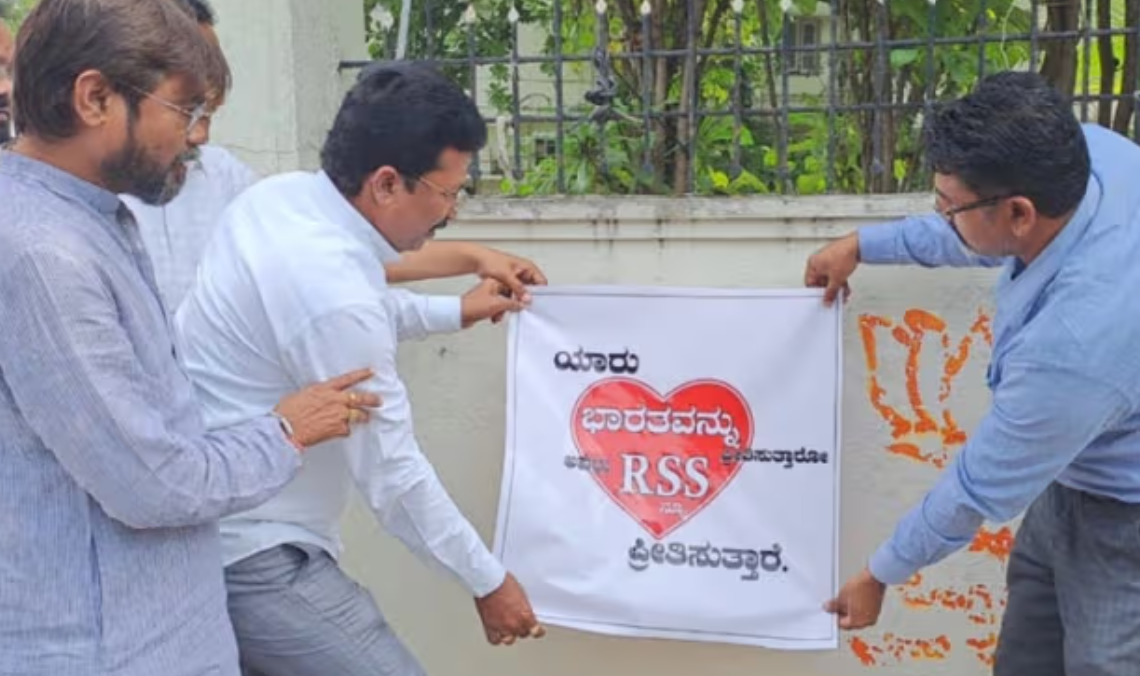 ಬೆಂಗಳೂರು: ರಾಜ್ಯದಲ್ಲಿ ಆರ್ ಎಸ್ ಎಸ್ ಬ್ಯಾನ್ ಕುರಿತಂತೆ ಸಿಎಂ ಸಿದ್ದರಾಮಯ್ಯ ಅವರಿಗೆ ಸಚಿವ ಪ್ರಿಯಾಂಕ್ ಖರ್ಗೆ ಪತ್ರ ಬರೆದ ಹಿನ್ನಲೆಯಲ್ಲಿ, ರಾಜ್ಯಾದ್ಯಂತ ‘ಐ ಲವ್ ಆರ್ ಎಸ್ ಎಸ್’ ಅಭಿಯಾನ ಪ್ರಾರಂಭವಾಗಿದೆ. ಕಾರ್ಯಕರ್ತರು ಪೋಸ್ಟರ್ ಹಿಡಿದು, “ಯಾರು ಭಾರತವನ್ನು ಪ್ರೀತಿಸುತ್ತಾರೆ, ಅವರು ಆರ್ ಎಸ್ ಎಸ್ ಅನ್ನು ಸಹ ಪ್ರೀತಿಸುತ್ತಾರೆ” ಎಂಬ ಸಂದೇಶವನುಲ್ಲಿಸಿರುವರು.