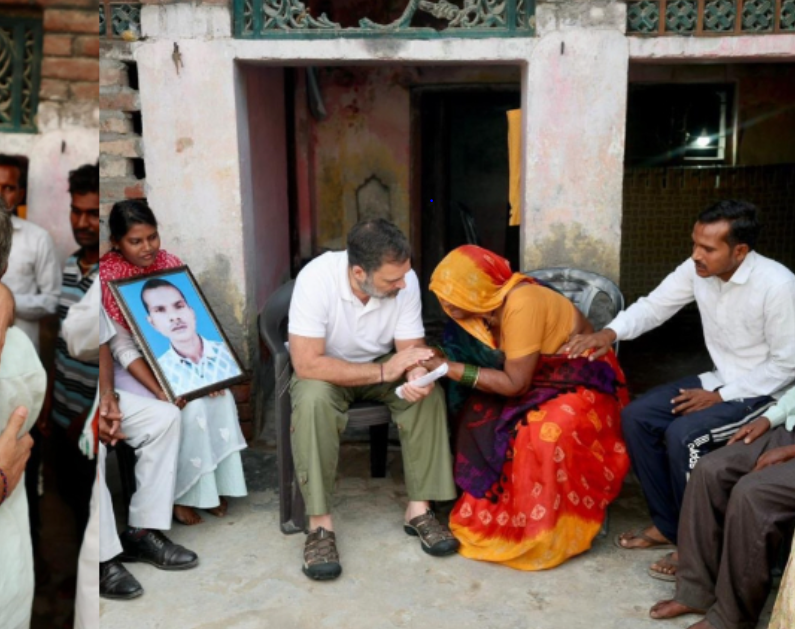 ಲಕ್ನೋ: ಲೋಕಸಭೆಯ ವಿರೋಧ ಪಕ್ಷದ ನಾಯಕ ರಾಹುಲ್ ಗಾಂಧಿ ಶುಕ್ರವಾರ ಬೆಳಗ್ಗೆ ಉತ್ತರ ಪ್ರದೇಶದ ಫತೇಪುರಕ್ಕೆ ಆಗಮಿಸಿ, ಕಳ್ಳನೆಂದು ತಪ್ಪಾಗಿ ಭಾವಿಸಿ ಹತ್ಯೆಯಾಗಿರುವ ದಲಿತ ಯುವಕ ಹರಿಓಂ ವಾಲ್ಮೀಕಿ ಅವರ ಕುಟುಂಬವನ್ನು ಭೇಟಿಯಾಗಿದ್ದಾರೆ.