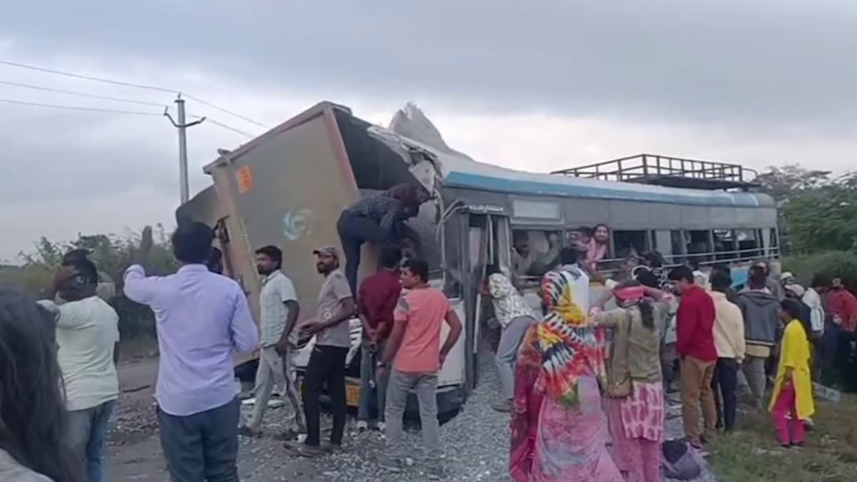 ತಾಂಡೂರ್ (ತೆಲಂಗಾಣ): ರಂಗಾರೆಡ್ಡಿ ಜಿಲ್ಲೆಯ ಚೆವೆಲ್ಲಾ ತಾಲೂಕಿನ ಮಿರಾಜಗುಡಾ ಬಳಿ ಇಂದು ಬೆಳಿಗ್ಗೆ ಸಂಭವಿಸಿದ ಭೀಕರ ರಸ್ತೆ ಅಪಘಾತ ರಾಜ್ಯವನ್ನೇ ಬೆಚ್ಚಿಬೀಳಿಸಿದೆ. ಆರ್ಟಿಸಿ ಬಸ್ ಹಾಗೂ ಟಿಪ್ಪರ್ ವಾಹನದ ನಡುವೆ ಸಂಭವಿಸಿದ ಈ ಅಪಘಾತದಲ್ಲಿ 20 ಮಂದಿ ಪ್ರಯಾಣಿಕರು ಮೃತಪಟ್ಟಿದ್ದು, ಹಲವರು ಗಂಭೀರವಾಗಿ ಗಾಯಗೊಂಡಿದ್ದಾರೆ.