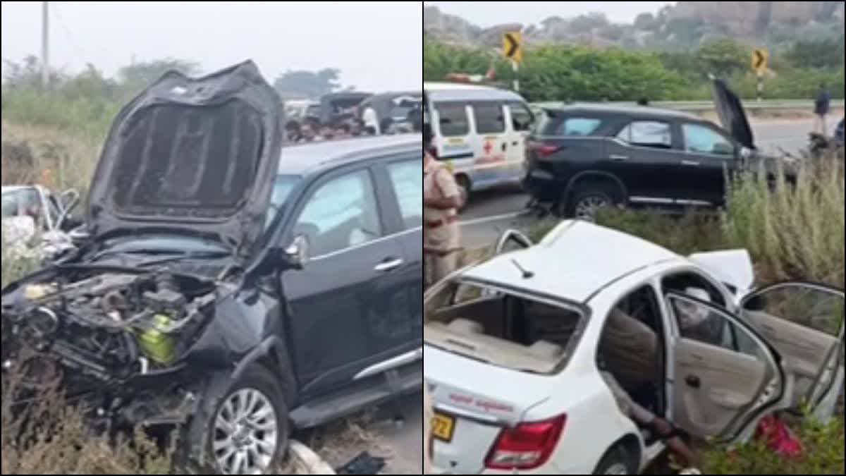 ಎಮ್ಮಿಗನೂರು (ಕರ್ನೂಲು, ಆಂಧ್ರಪ್ರದೇಶ): ಕರ್ನೂಲು ಜಿಲ್ಲೆಯ ಕೊಟೆಕಲ್ ಬಳಿ ಇಂದು ಬೆಳಗ್ಗೆ ಭೀಕರ ರಸ್ತೆ ಅಪಘಾತ ಸಂಭವಿಸಿದ್ದು, ಸ್ವಿಫ್ಟ್ ಮತ್ತು ಫಾರ್ಚೂನರ್ ಕಾರುಗಳ ಢಿಕ್ಕಿಯಲ್ಲಿ ಇಬ್ಬರು ಮಕ್ಕಳು ಸೇರಿದಂತೆ ಐವರು ದುರ್ಮರಣ ಹೊಂದಿದ್ದಾರೆ. ಮತ್ತಿಬ್ಬರು ಗಂಭೀರವಾಗಿ ಗಾಯಗೊಂಡಿದ್ದು, ಅವರನ್ನು ಅದೋನಿ ಸರ್ಕಾರಿ ಆಸ್ಪತ್ರೆಗೆ ಸೇರಿಸಲಾಗಿದೆ.