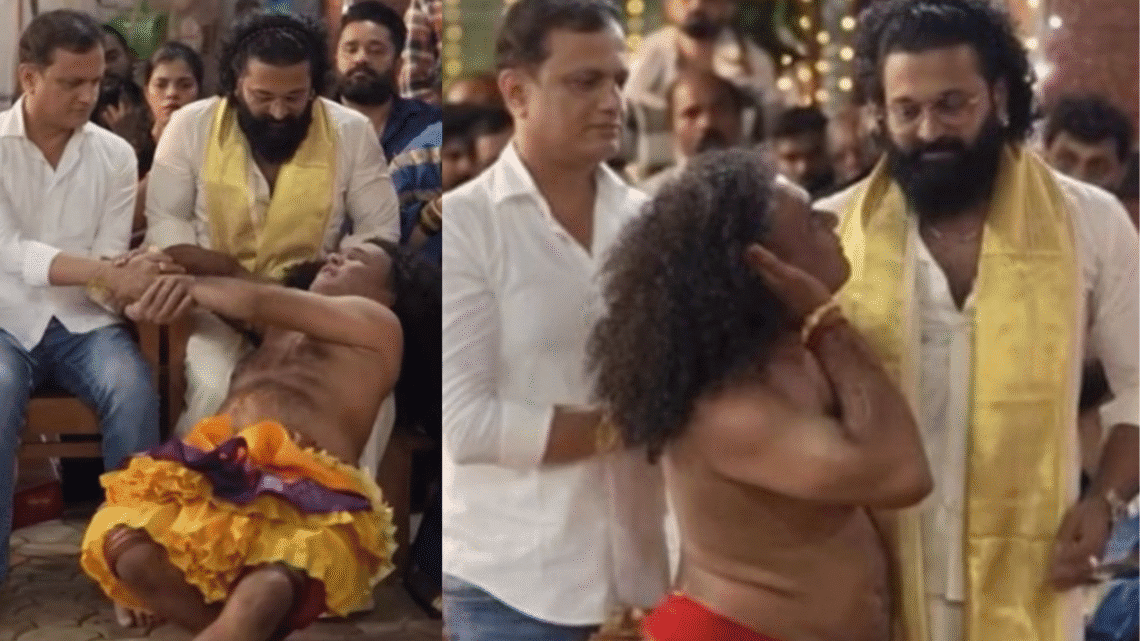 ವೈರಲ್ ಆಗಿರುವ ವೀಡಿಯೊದಲ್ಲಿ ರಿಷಬ್ ಶೆಟ್ಟಿ ಅವರ ಕಾಲಿನ ಮೇಲೆ ದೈವನರ್ತಕ ಮಲಗಿ ದೈವಾರಾಧನೆ ನಡೆಸುತ್ತಿರುವ ದೃಶ್ಯ ಕಂಡುಬಂದಿದ್ದು, ಇದು ಸಾಂಪ್ರದಾಯಿಕ ನಿಯಮಗಳಿಗೆ ವಿರುದ್ಧವೆಂದು ಟೀಕಿಸಲಾಗುತ್ತಿದೆ. “ರಿಷಬ್ ಶೆಟ್ಟಿ ತೊಡೆ ಮೇಲೆ ಮಲಗಿದ್ದಾನೆ, ಇದು ಪಂಜುರ್ಲಿ ಪದ್ಧತಿ ಅಲ್ಲ” ಎಂಬ ಅಭಿಪ್ರಾಯಗಳು ಸಾಮಾಜಿಕ ಮಾಧ್ಯಮಗಳಲ್ಲಿ ಹರಿದಾಡುತ್ತಿವೆ.