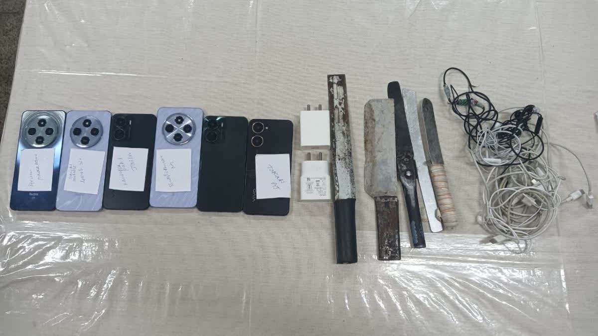 ಪರಪ್ಪನ ಅಗ್ರಹಾರ ಜೈಲಿನಲ್ಲಿ ತಪಾಸಣೆ ವೇಳೆ 14 ಮೊಬೈಲ್ ಫೋನ್ಗಳು, 9 ಸಿಮ್ ಕಾರ್ಡ್ಗಳು, 5 ಚಾರ್ಜರ್ಗಳು, 2 ಇಯರ್ಫೋನ್, 10 ಚಾಕುಗಳು ಪತ್ತೆಯಾಗಿವೆ. ಮೈಸೂರಿನಲ್ಲಿ 9 ಫೋನ್ಗಳು, 11 ಸಿಮ್ ಕಾರ್ಡ್ಗಳು; ಬೆಳಗಾವಿಯಲ್ಲಿ 4 ಫೋನ್ಗಳು ಹಾಗೂ 366 ಗ್ರಾಂ ಗಾಂಜಾ ಪತ್ತೆಯಾಗಿದ್ದು, ವಿಜಯಪುರದಲ್ಲಿ 1 ಫೋನ್, ಮಂಗಳೂರಿನಲ್ಲಿ 4 ಫೋನ್ ಪತ್ತೆಯಾಗಿದೆ. ಒಟ್ಟು 67 ಮೊಬೈಲ್ ಫೋನ್ಗಳು, 48 ಸಿಮ್ ಕಾರ್ಡ್ಗಳು, 14 ಚಾರ್ಜರ್ಸ್, 10 ಇಯರ್ ಫೋನ್ಗಳು, 10 ಆಯುಧಗಳು ಮತ್ತು 60,880 ರೂ. ನಗದು ಪತ್ತೆಯಾಗಿದ್ದು, 6 ಪ್ರಕರಣಗಳು ದಾಖಲಾಗಿವೆ ಎಂದು ಜೈಲು ಮೂಲಗಳು ತಿಳಿಸಿದ್ದಾರೆ.