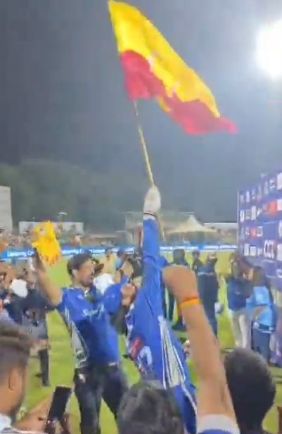 ಈ ಹಿನ್ನೆಲೆ ಜನವರಿ 25ರಂದು ತಮಿಳುನಾಡಿನ ಕೊಯಿಮತ್ತೂರಿನಲ್ಲಿ ನಡೆದ ಕರ್ನಾಟಕ ಬುಲ್ಡೋಜರ್ಸ್ vs ಭೋಜ್ಪುರಿ ದಬಾಂಗ್ಸ್ ಕ್ರಿಕೆಟ್ ಪಂದ್ಯ ವಿಶೇಷ ಮಹತ್ವ ಪಡೆದುಕೊಂಡಿತು. ಪಂದ್ಯ ಮುಗಿದ ಬಳಿಕ ಕಿಚ್ಚ ಸುದೀಪ್ ಅವರು ಅದೇ ಮೈದಾನದಲ್ಲಿ ಕನ್ನಡ ಬಾವುಟ ಹಾರಿಸುವ ಮೂಲಕ ಕನ್ನಡಾಭಿಮಾನಿಗಳಿಗೆ ಹೆಮ್ಮೆಯ ಕ್ಷಣ ನೀಡಿದ್ದಾರೆ. “ನಮ್ಮ ನೆಲ, ನಮ್ಮ ಭಾಷೆಗೆ ಅವಮಾನವಾದರೆ ಮೌನವಾಗಿರೋದಿಲ್ಲ” ಎಂಬ ಅರ್ಥಪೂರ್ಣ ಸಂದೇಶವನ್ನು ಸುದೀಪ್ ಈ ಮೂಲಕ ರವಾನಿಸಿದ್ದಾರೆ.