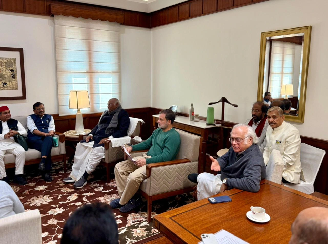 ಇಂದು ಬೆಳಗ್ಗೆ ಕಾಂಗ್ರೆಸ್ ಅಧ್ಯಕ್ಷ ಮಲ್ಲಿಕಾರ್ಜುನ ಖರ್ಗೆ ಅವರ ಉಪಸ್ಥಿತಿಯಲ್ಲಿ ನಡೆದ ವಿಪಕ್ಷ ನಾಯಕರ ಸಭೆಯಲ್ಲಿ ಈ ನಿರ್ಣಯ ಕೈಗೊಳ್ಳಲಾಗಿದೆ. ಟಿಎಂಸಿ, ಡಿಎಂಕೆ, ಸಮಾಜವಾದಿ ಪಕ್ಷ, ಆರ್ಜೆಡಿ, ಶಿವಸೇನಾ (ಯುಬಿಟಿ), ಎನ್ಸಿಪಿ (ಎಸ್ಪಿ) ಮತ್ತು ಆರ್ಎಸ್ಪಿ ಸೇರಿದಂತೆ ಹಲವು ಪಕ್ಷಗಳ ನಾಯಕರು ಸಭೆಯಲ್ಲಿ ಭಾಗವಹಿಸಿದ್ದರು.