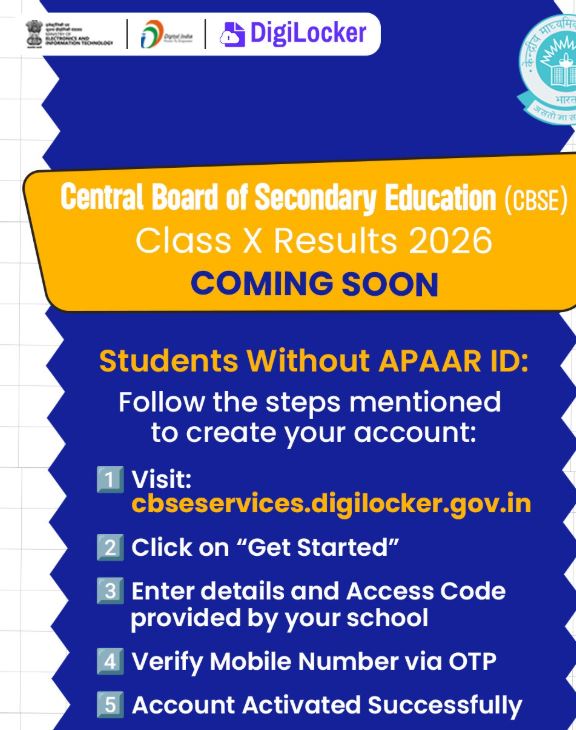 DigiLocker ತನ್ನ ಅಧಿಕೃತ ಪ್ರಕಟಣೆಯಲ್ಲಿ, ವಿದ್ಯಾರ್ಥಿಗಳು ಫಲಿತಾಂಶ ದಿನದವರೆಗೆ ಕಾಯದೆ ಈಗಲೇ ತಮ್ಮ ಖಾತೆಗಳನ್ನು ಸೃಷ್ಟಿಸಿಕೊಳ್ಳಬೇಕು ಎಂದು ಸಲಹೆ ನೀಡಿದೆ. ವಿಶೇಷವಾಗಿ APAAR ID ಇಲ್ಲದವರು CBSE ಸೇವಾ ಪೋರ್ಟಲ್ ಮೂಲಕ ನೋಂದಣಿ ಮಾಡಿಕೊಳ್ಳಬೇಕು ಎಂದು ತಿಳಿಸಿದೆ. APAAR ID ಹೊಂದಿರುವ ವಿದ್ಯಾರ್ಥಿಗಳಿಗೆ ಫಲಿತಾಂಶ ಪ್ರಕಟವಾದ ತಕ್ಷಣ “Issued Documents” ವಿಭಾಗದಲ್ಲಿ ಡಿಜಿಟಲ್ ಮಾರ್ಕ್ಸ್ ಕಾರ್ಡ್ ಲಭ್ಯವಾಗಲಿದೆ.