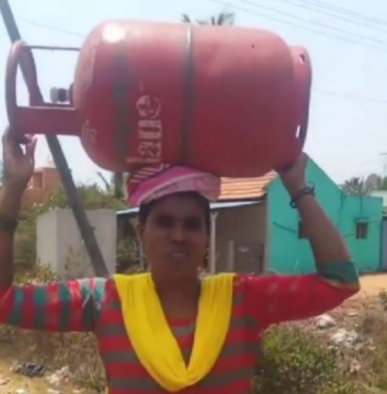 2.5 ಕಿಮೀ ತಲೆ ಮೇಲೆ ಸಿಲಿಂಡರ್: ಮಹಿಳೆಯ ಕಷ್ಟ ವೈರಲ್