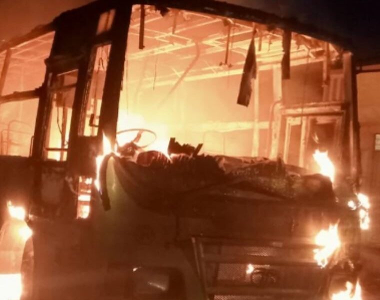 ಲಗ್ಗೆರೆ ಬಸ್ ನಿಲ್ದಾಣದಲ್ಲಿ ಬೆಂಕಿ ಭೀತಿ: BMTC ಬಸ್ ಭಸ್ಮ!