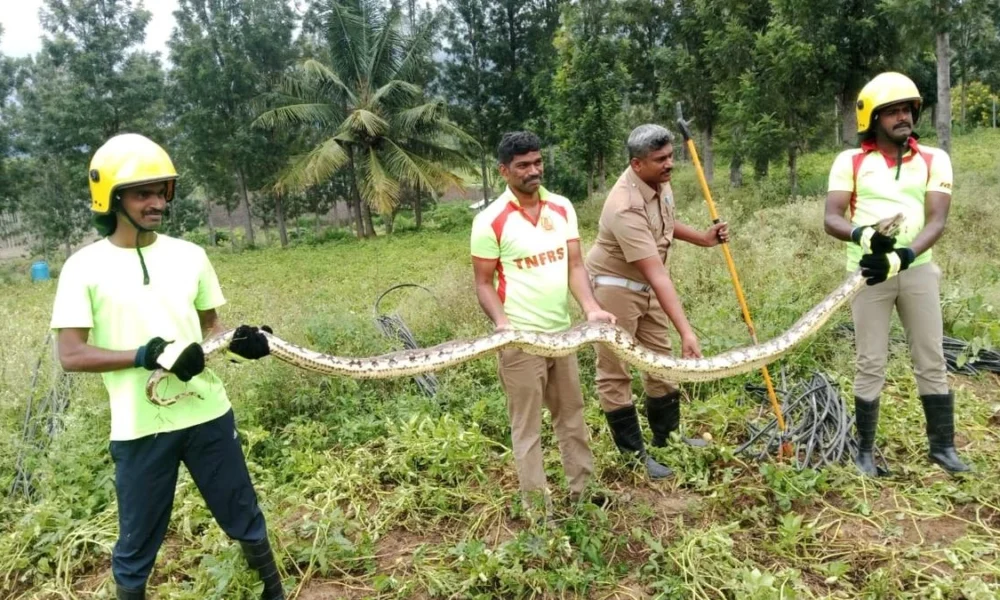 ಮೈಸೂರು: ಹುಣಸೂರು ತಾಲೂಕಿನ ಹನಗೋಡು ಹೋಬಳಿಯ ಕಲ್ಲೂರಪ್ಪನ ಬೆಟ್ಟ ಸಮೀಪದ ಮಾದಹಳ್ಳಿಯಲ್ಲಿ ಜೋಳದ ಹೊಲಕ್ಕೆ ನುಗ್ಗಿದ್ದ ಭಾರಿ ಗಾತ್ರದ ಹೆಬ್ಬಾವು ಸ್ಥಳೀಯರಲ್ಲಿ ಭೀತಿ ಉಂಟುಮಾಡಿತ್ತು. ಈ ಬಗ್ಗೆ ಎಚ್ಚರಗೊಂಡ ರೈತ ಮುನಿಕುಮಾರ್ ಅವರು ತಕ್ಷಣ ಅರಣ್ಯ...