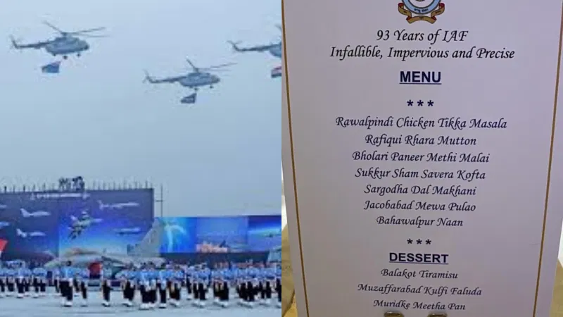 ನವದೆಹಲಿ: ಭಾರತೀಯ ವಾಯುಸೇನೆ (IAF) ಬುಧವಾರ ತನ್ನ 93ನೇ ವಾರ್ಷಿಕೋತ್ಸವವನ್ನು ಆಚರಿಸಿದ ಸಂದರ್ಭದಲ್ಲಿ, ಊಟದ ಮೆನು ಮೂಲಕ ಪಾಕಿಸ್ತಾನವನ್ನು ಹಾಸ್ಯವಾಗಿ ಟಾಂಗ್ ಮಾಡಿದೆ. ವಾರ್ಷಿಕೋತ್ಸವದ ವೇಳೆ ಬಳಸಿದ ಖಾದ್ಯಗಳ ಹೆಸರಿನಲ್ಲಿ ಬಾಲಕೋಟ್ನಿಂದ ಆಪರೇಷನ್ ಸಿಂಧೂರ ವರೆಗಿನ...