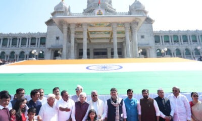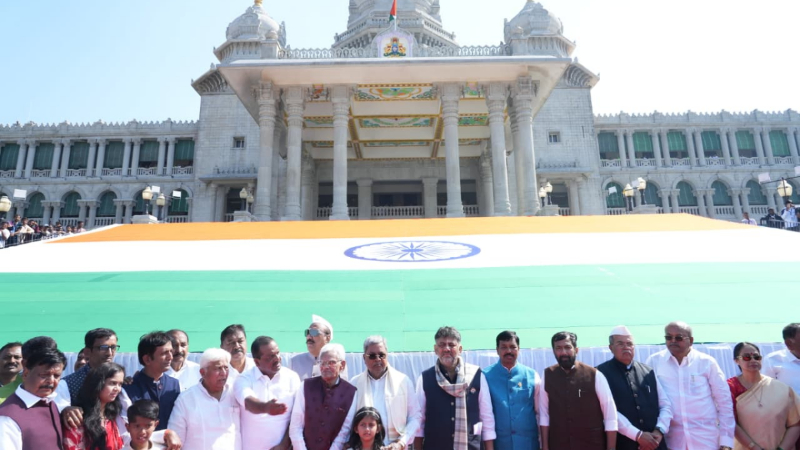 ಬೆಳಗಾವಿ: ಸುವರ್ಣಸೌಧದ ಭವ್ಯ ಮೆಟ್ಟಿಲುಗಳ ಮೇಲೆ ಇಂದು (ಡಿ. 9) ಮುಖ್ಯಮಂತ್ರಿ ಸಿದ್ದರಾಮಯ್ಯ ವಿಶ್ವದಲ್ಲೇ ಎರಡನೇ ಅತಿದೊಡ್ಡ ಖಾದಿ ರಾಷ್ಟ್ರೀಯ ಧ್ವಜವನ್ನು ಗೌರವಪೂರ್ವಕವಾಗಿ ಅನಾವರಣಗೊಳಿಸಿದರು. ದೇಶಾಭಿಮಾನ ಮತ್ತು ಖಾದಿ ಪರಂಪರೆಯ ವೈಭವವನ್ನು ಒಮ್ಮೆ ಮತ್ತೊಮ್ಮೆ ನೆನೆಪಿಗೆ...