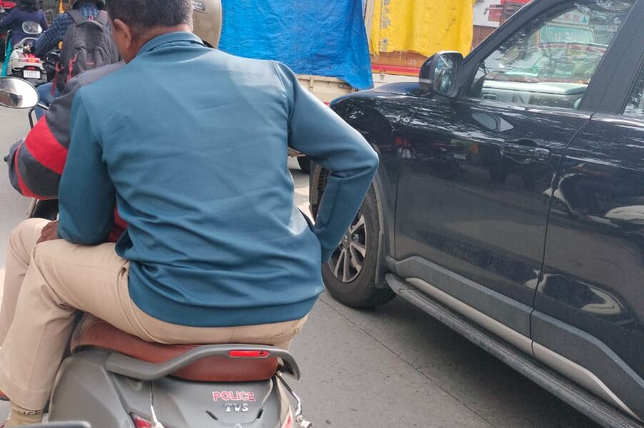 ಬೆಂಗಳೂರು: ಕಾನೂನು ಪಾಲಕರಾಗಿರುವ ಪೊಲೀಸರು ಕೂಡ ತಮ್ಮಿಂದಲೇ ಕಾನೂನು ಉಲ್ಲಂಘಿಸುತ್ತಿರುವ ದೃಶ್ಯವು ಜನಸಾಮಾನ್ಯರಲ್ಲಿ ಚರ್ಚೆಗೆ ಕಾರಣವಾಗಿದೆ. ಶುಕ್ರವಾರ ಮೈಸೂರಿ ರಸ್ತೆಯಲ್ಲಿ ಕಂಡುಬಂದ ದೃಶ್ಯದಲ್ಲಿ, ಪೊಲೀಸ್ ಸಿಬ್ಬಂದಿ ತಮ್ಮ ಜುಪಿಟರ್ ವಾಹನದಲ್ಲಿ ಯಾವುದೇ ಹೆಲ್ಮೆಟ್ ಇಲ್ಲದೇ ಮತ್ತೊಬ್ಬ...